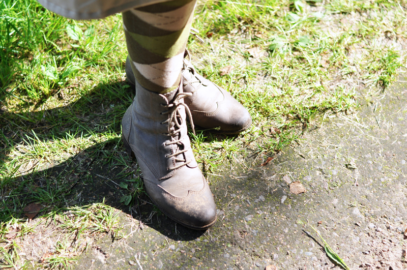 Kängor från Dkode från några säsonger sedan och rutiga strumpor för att skydda mot bitande insekter och ormar. (Har inte så mycket ormar där vi bor dock, men är det safari-fantasi så är det och då får man ju ”go all in”.) Ett tips om man har svårt att hitta rutiga knästrumpor i vanlig butik är att kolla in hästsport-affärer. De här köpte jag när jag var på vår lokala ridsportsaffär och köpte träns till Kansas. Rutiga strumpor är den finaste sorten tycker jag.