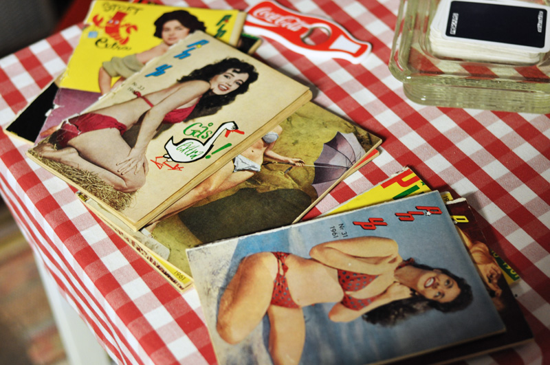 Efter att ha tänkt på den där varmkorven ett tag hittade vi gamla snusk-tidningar. Pin up från början av 60-talet som inte alls var så snuskiga med dagens ögon sett utan ganska roliga och tämligen oskyldiga faktiskt… Gås-extra! Bara det liksom!