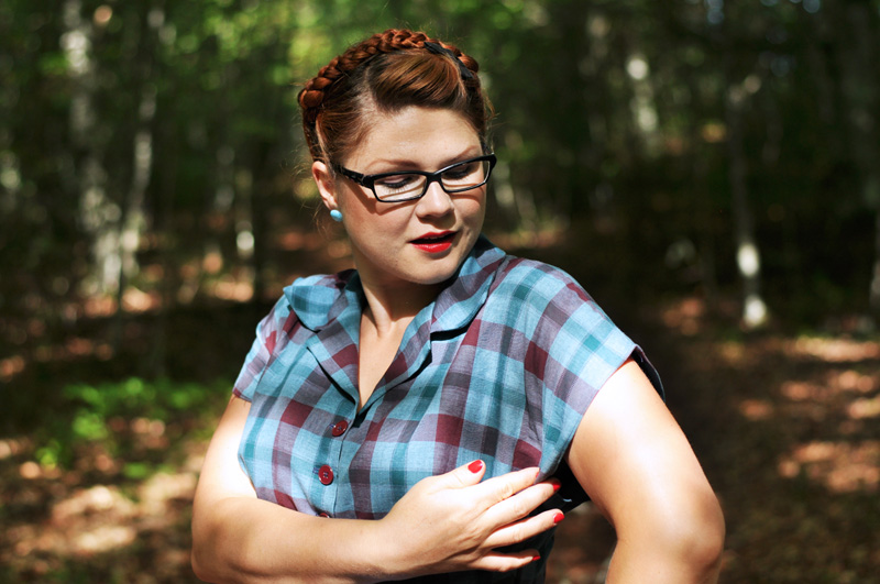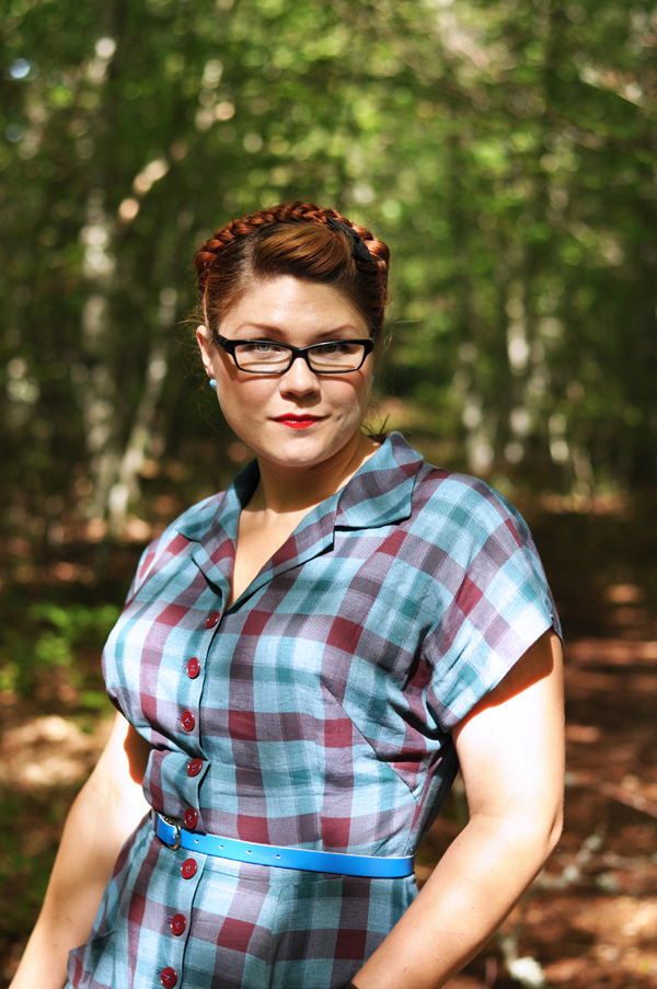 Jag tog den här alldeles nysydda klänningen på. För även om jag är väldigt förtjust i kjol och blus så är det ju trevligt att bryta av ibland genom att sy en klänning här och där..