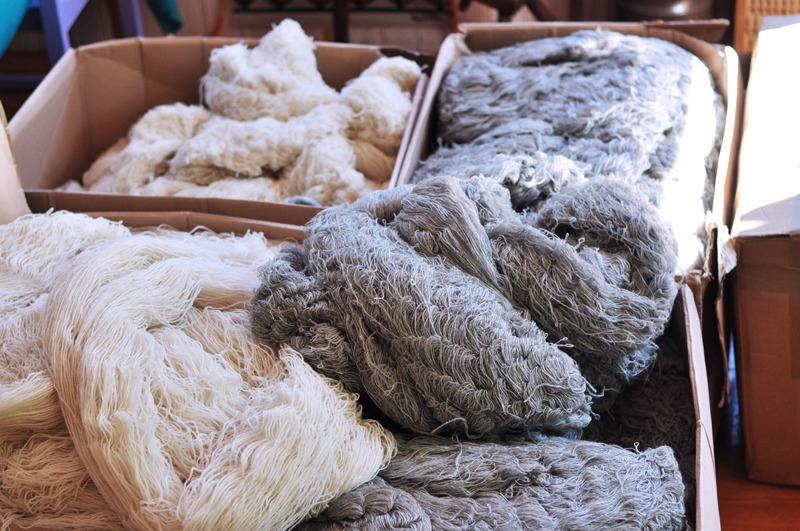 Det är så inspirerande att se alla dessa kilon garner bara vänta på att bli hanterade. Känna lukten av fårullen och verkligen gå in i vilket härligt material ull är..