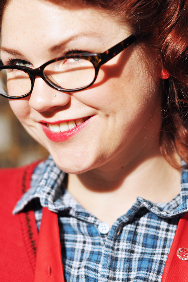 Häromveckan gjordes ett stort fynd när vi flyttade om lite saker i ett förråd hemma hos mamma. Nämligen en påse fylld med gamla skjortor efter farfar. Min farfar, som gick bort för väldigt längesedan (15 år ungefär) älskade flanellskjortor och glad är jag för det. Så här års är ju sådär lagom sliten flanell bland det skönaste man kan ha på sig. Så nu när jag är hemma och myser (och ibland annars med för den delen) tar jag helst på mig någon av farfars flanellskortor. Så här tillexempel.. Instoppad i favoritkjolen som jag sydde för väldigt många år sedan och som börjar bli lite sliten i kanterna och ovanpå det en stickad röd väst i merinoull och en röd damslips.