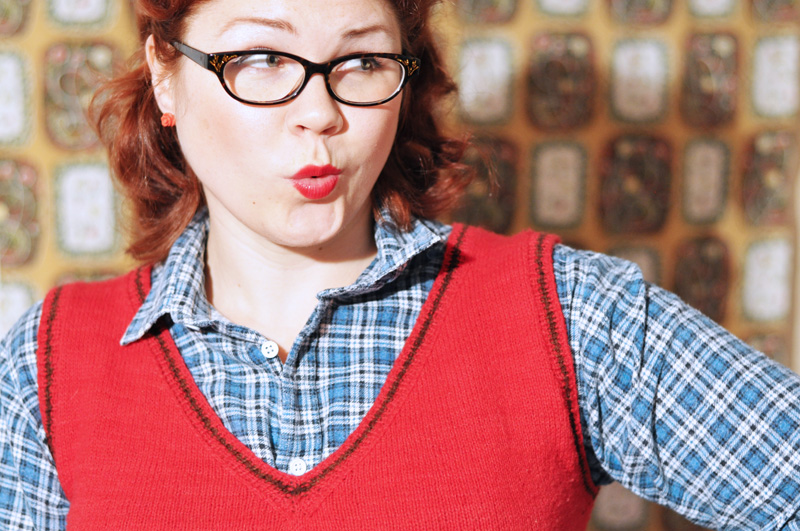 A couple of days ago we found a bag full of my late granddads things at my moms place, among them where several of his favorite shirts.. (The man loved plaid flanell) And in my humble opinion old flanell shirts is the best thing for this season to keep the cold away and just feel darn right cozy all the time… Here I wear it together with a skirt I made many years ago and a knitted vest. Very comfortable and just the thing for just taking it easy at home on a saturday…/