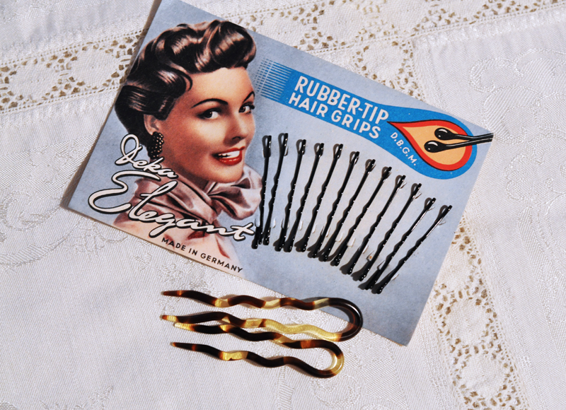 /I went to Gothenburg over the day last Sunday to visit a dear old friend who lives there. A day with just strolling, talking and eating a long and good lunch, very nice stuff to do on a Sunday… I did some shopping though, at a small antique store I found these goodies.. I just love things for the hairdo and I love tortoise hair barrettes and hairpins…/