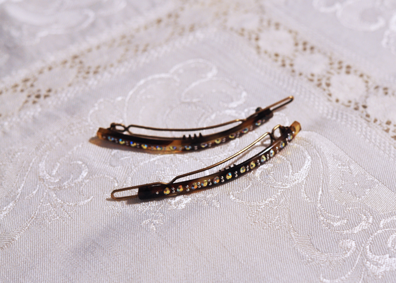 Gamla sköldpaddsfärgade hårspännen med strass. Min absoluta favorit!