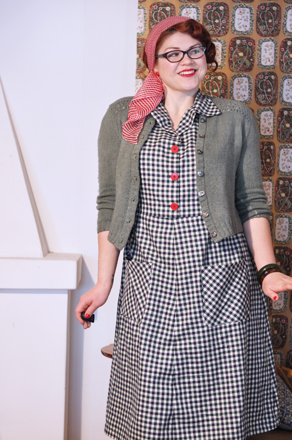 Jättefin klänning! Påminner väldigt mycket om en klänning som jag har efter min mormor. Den är troligen från 1930-talet. Jag undrar om jag skulle kunna få köpa mönstret av dig eller byta det mot en keramikkopp kanske? Och så undrar jag vad det är för kofta du har på bilderna? Är den v-ringad eller rund i halsen? Ska göra ett hantverksbyte nu under våren och letar en enkel koftmodell i ca 1940-talsstil.