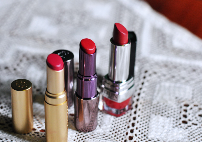 /I have always loved lipstick and I have three new favorites. Urband Decays, Revolution lipstick in color 69, Too Faced, La Creme lipstick in color Jelly Bean and the swedish mineral brand, Idun in color Jordgubb (thats strawberry 😉 )…. Three very lovely lipsticks in different textures and different shades of red, all necessary in a well sorted make up bag in my opinion…/