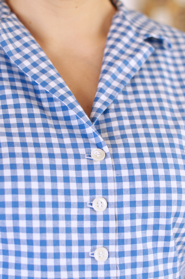 Klassiska rutor krävde klassiska knappar så det fick bli enkla vita pärlemorsknappar..