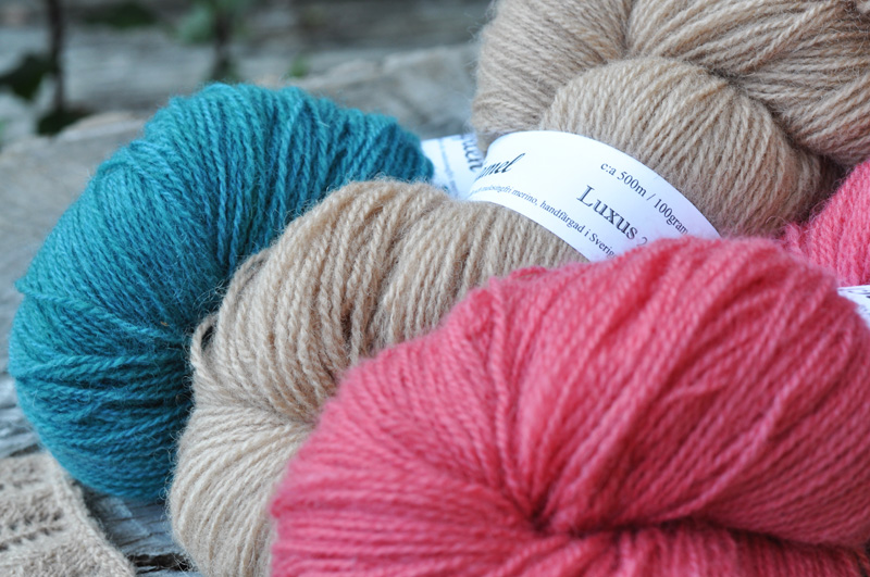 När blev jag en sådan typ som bara bloggar en gång i veckan frågar jag mig? Jag skyller på att jag har haft häcken full med annat och helt enkelt inte riktigt haft tiden.. Vi får hoppas på ändring på den fronten. En av sakerna som har tagit upp tiden är givetvis jobbet på Färgkraft, för just nu har vi fullspäckat med både det ena och det andra. Bland annat det här! Ett nytt garn som vi jobbat med och som äntligen är färdigt. Ett fantastiskt fint 2-trådigt garn i mjukaste ullen från nordiska Leicester-får och Merino från Falklandsöarna (garanterat mulesing-fri) och vi döpte det till Luxus! Är det inte fint så säg!