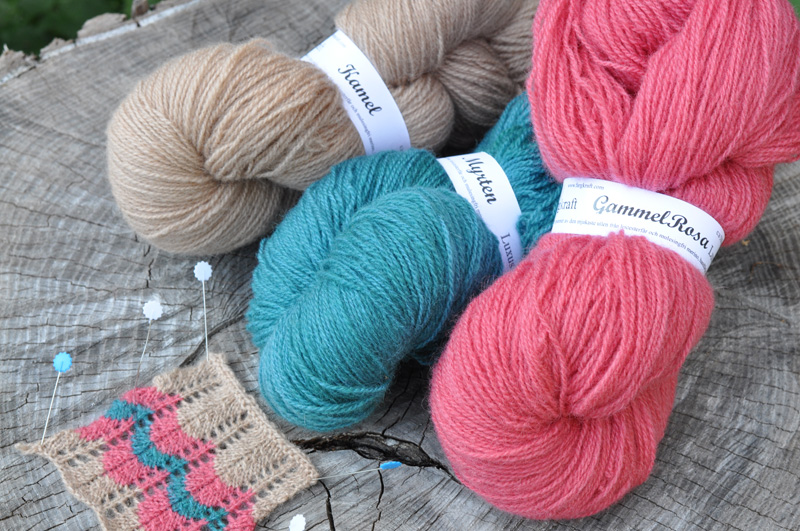 /I have been so busy lately that the blogposts have become more and more random. I hope to change that in the future, promise! One thing thats been keeping me busy is a heavier workload on Färgkraft but thats how it is on small family companies. Sometimes it’s just crazy and that time is now. This morning I came home after spending five days away working on a big weaving expo in the north of Sweden and on wednesday its time to go away again to another expo down south. Lots of things to do in the days in-between and lots of yarn to dye. Like this new one that we’ve been working on for almost a year. Its a thin 2-ply in in the softest merino from the Falklands (guaranteed mulesing-free) and Leicester-wool from Sweden and Denmark. I absolutely love this and can’t wait to start knitting something with it. It will be great for the typical vintage inspired models that I like to make and of course that’s what we had in mind when we started thinking about yet another type for our line of wool yarns…/